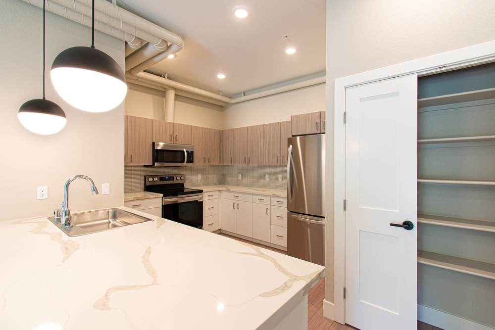 As you take a closer look at our luxurious studio, one, two, and three bedroom apartments, you can envision how in-home features like pendant lighting and a well-equipped kitchen with stainless-steel appliances will elevate your lifestyle. Plus, premium extras like a private balcony and sleek flooring make it even easier to picture yourself here.